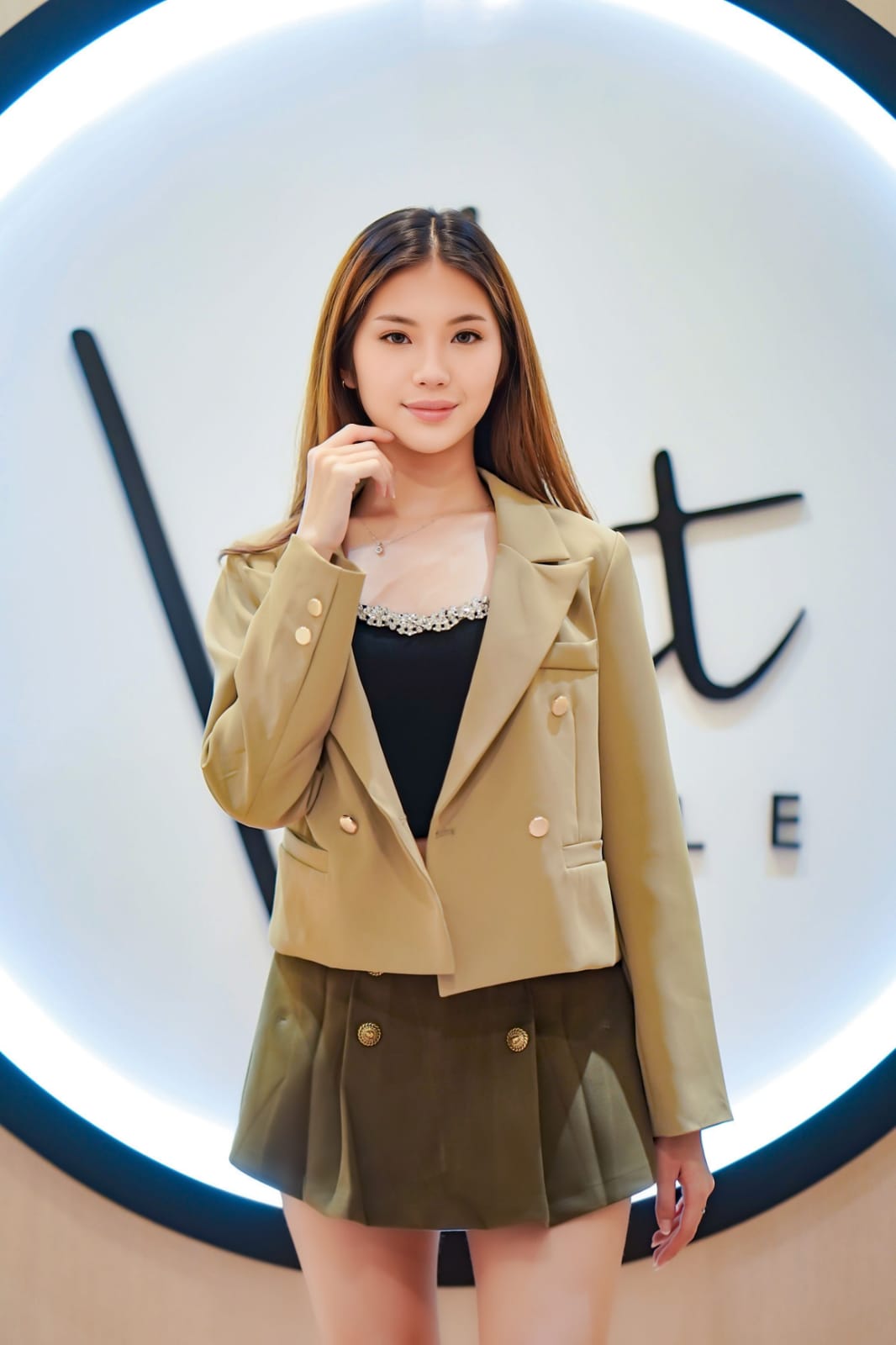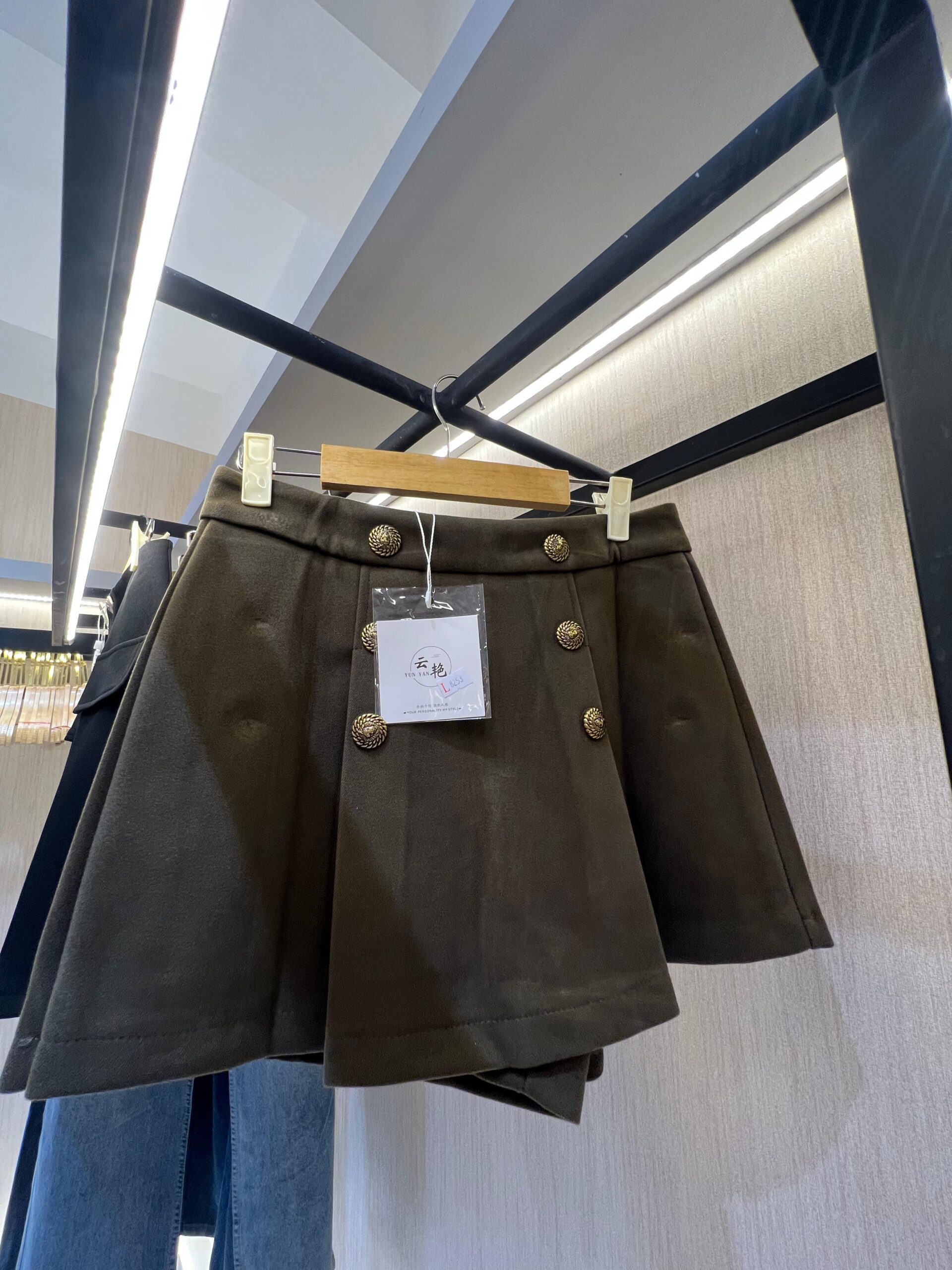 Tingkatkan gaya harianmu dengan Olive Luxe Button Skirt yang memadukan desain klasik dan modern. Rok dengan warna hijau zaitun ini dihiasi detail kancing emas bertekstur, menciptakan tampilan yang anggun sekaligus stylish. Dengan potongan flare yang memberikan kesan feminim, rok ini adalah pilihan sempurna untuk berbagai acara.